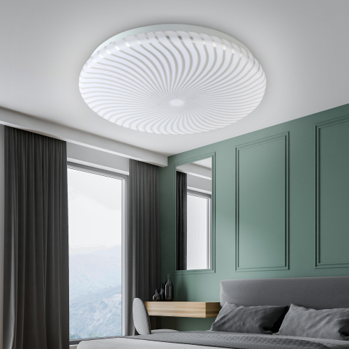 Рассеиватель имеет эксклюзивный дизайн: геометричный узор серебристого оттенка изящно гармонирует с круглым плоским корпусом. Это позволяет использовать SPB-6 "Slim 8" в качестве освещения для кухни, спальни или гостиной.