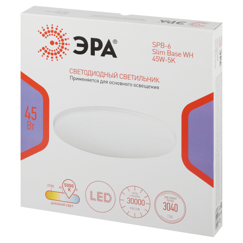 Светодиодный светильник ЭРА SPB-6 Slim Base WH 45W-5K – современное решение для общего освещения жилых и коммерческих помещений.