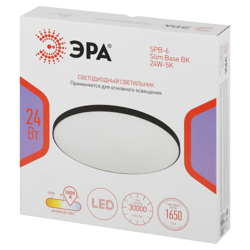 Светодиодный светильник ЭРА SPB-6 Slim Base BK 24W-5K – современное решение для общего освещения жилых и коммерческих помещений.