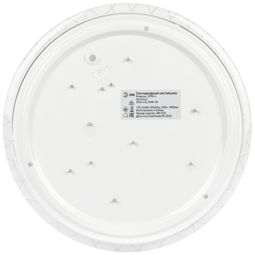 Мощность устройства составляет 24 Вт, световой поток — 1800 лм. Благодаря матовому рассеивателю свет распределяется мягко и равномерно, не создавая бликов и не утомляя глаза.