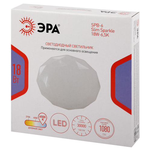 Светодиодный светильник ЭРА SPB-6 Slim Sparkle 18W-6,5K– современное решение для общего освещения жилых и коммерческих помещений.