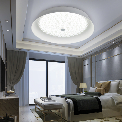 Накладной потолочный светильник LOCUS RGB. Модель подойдет для создания основного освещения в помещении. Светильник комплектуется современным призматическим рассеивателем, придающим ему футуристичный вид за счет 3D эффекта, и защищающим от ослепления светом. В комплекте поставки есть пульт ДУ, с помощью которого можно настраивать яркость, цветовую температуру, а также управлять режимами RGB подсветки.