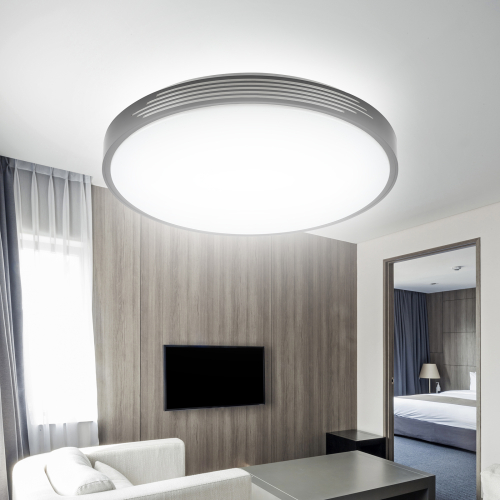 Светодиодный светильник ЭРА SPB-6-70-RC серии Liburn может крепиться на стену или потолок. Особым акцентом в его дизайне выступает контрастное кольцо, которое придает особый шик лампе. Яркость и цветовую температуру светильника можно регулировать, для чего в комплект входит пульт дистанционного управления. Цветовая температура данной модели изменяется в пределах от 3000 К до 6000 К. Основание светильника выполнено из металла, на котором расположен LED-модуль и современный безопасный драйвер. Диаметр светодиодной лампы составляет 50 см, мощность лампы 70 Вт. Светодиодная лампа гармонично впишется в современный интерьер.
