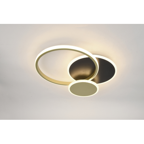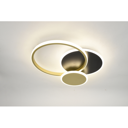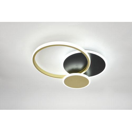 Стильный потолочный светодиодный светильник круглой формы в черно-золотом цвете — изысканное сочетание дизайна и функциональности. Оснащён пультом дистанционного управления с возможностью настройки яркости и цветовой температуры в диапазоне 3000–6500К. Мощность 60 Вт обеспечивает комфортное и равномерное освещение.