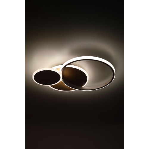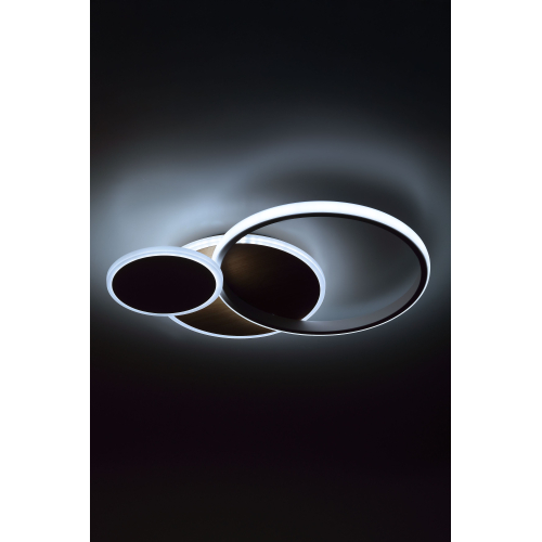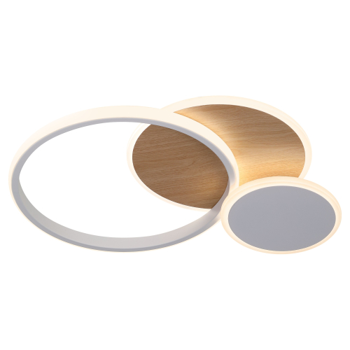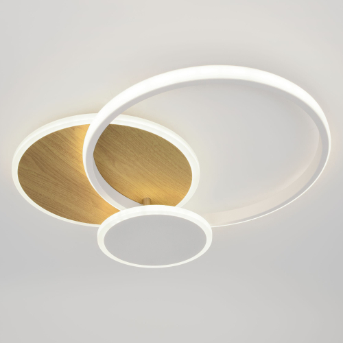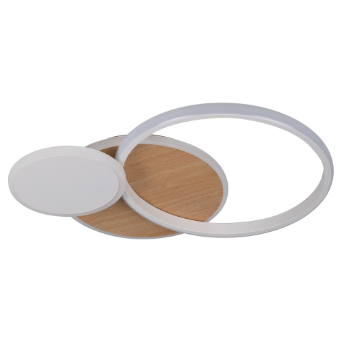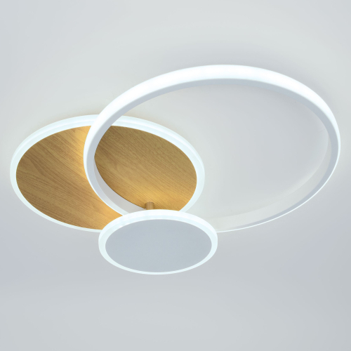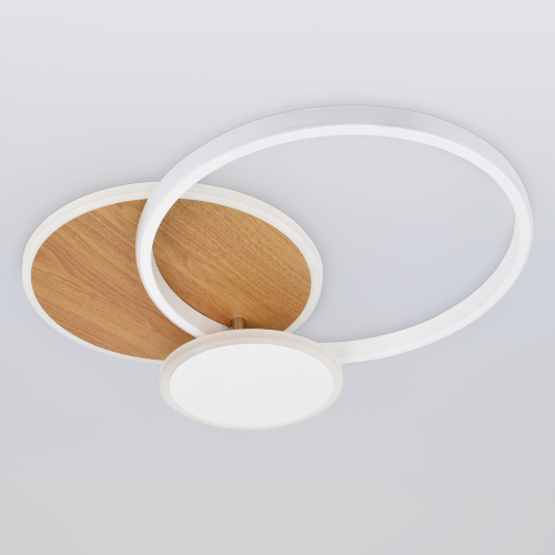 Элегантный потолочный светодиодный светильник белого цвета в сочетании со светлым деревом — стильное решение для современного интерьера. Мощность 60 Вт обеспечивает качественное освещение, а регулируемая цветовая температура (3000–6500К) позволяет подобрать комфортный свет под любое настроение. Управление осуществляется с помощью удобного пульта, который входит в комплект.