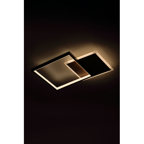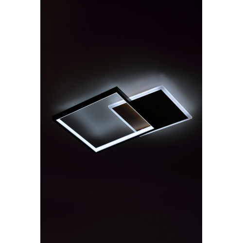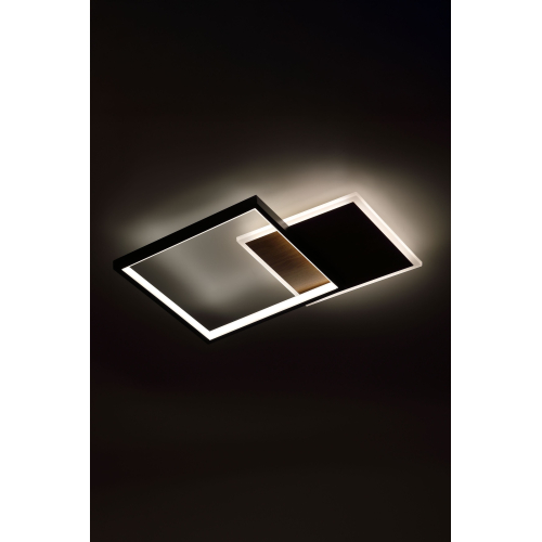 Современный потолочный светодиодный светильник геометрической формы в черном цвете в сочетании с цвктом дерева идеально впишется в интерьер в стиле минимализм или лофт. Мощность 60 Вт обеспечивает яркое и равномерное освещение. Регулируемая цветовая температура от 3000 до 6500K и пульт дистанционного управления в комплекте позволяют легко настраивать свет под любое настроение и время суток.