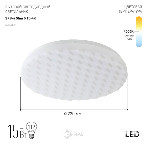 Благодаря мощности в 15 Вт и сроку службы в 30 000 часов электросветильник SPB-6 "Slim 5" прослужит вам долго и бесперебойно! Реализуйте все свои задумки вместе со светодиодной люстрой от бренда ЭРА!