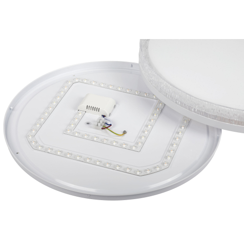 Компактные размеры 495×70 мм позволяют использовать его в сухих пространствах (степень защиты IP20) с низкими потолками, а плафон с эффектом звездного неба сочетается со многими интерьерными стилями.
