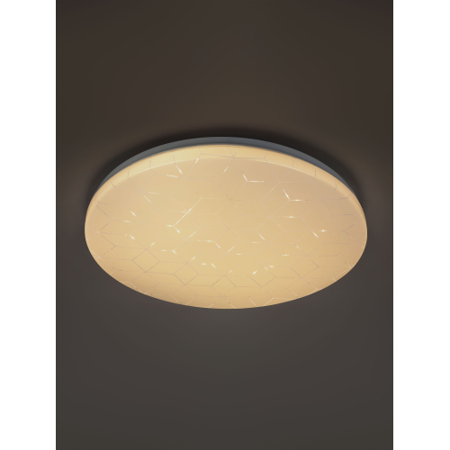 Компактные размеры 468×60 мм позволяют устанавливать светильник даже в помещениях с низкими потолками. Степень защиты IP20 делает его идеальным для сухих интерьеров. Геометрический узор на плафоне мягко подсвечивается при включении, создавая лёгкий декоративный эффект.