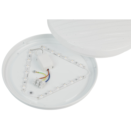 Мощность устройства составляет 24 Вт, световой поток — 1800 лм. Благодаря матовому рассеивателю свет распределяется мягко и равномерно, не создавая бликов и не утомляя глаза.