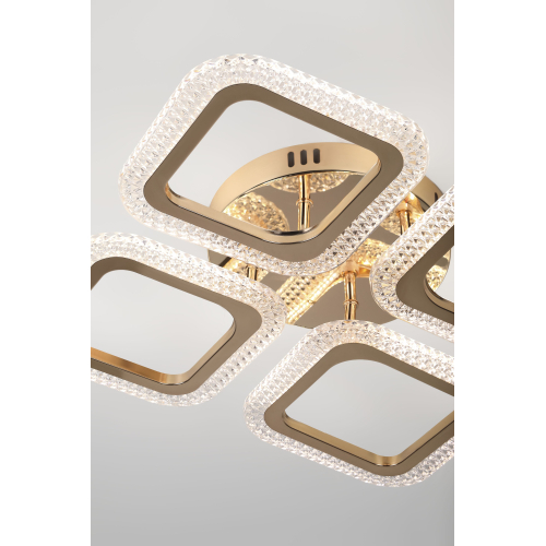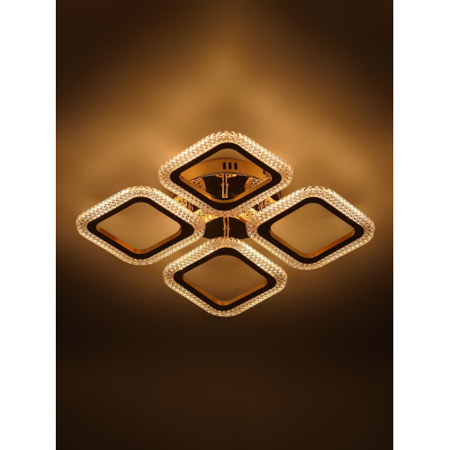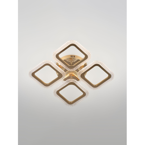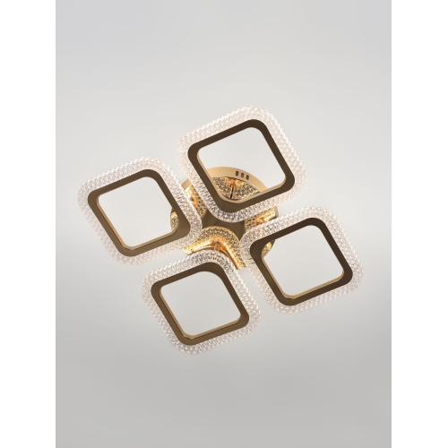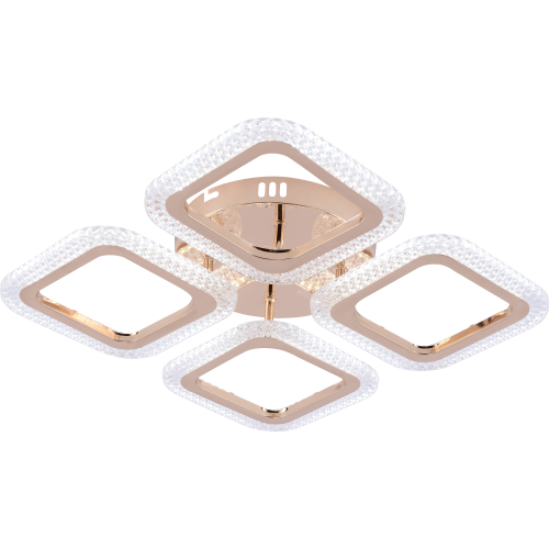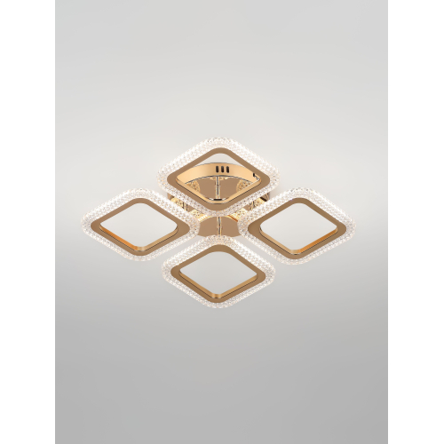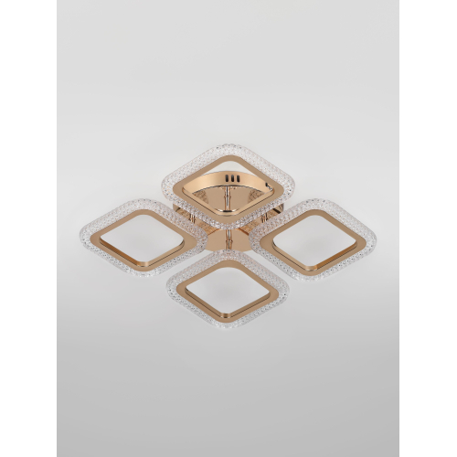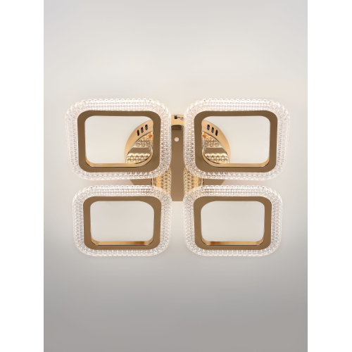 Серия стильных потолочных светодиодных светильников золотого цвета с квадратными рассеивателями и эффектным рельефным акрилом. Оснащены пультом дистанционного управления для удобной регулировки яркости и режимов освещения. Мощность моделей — от 48 до 64 Вт. Идеальное сочетание элегантного дизайна и функциональности для современного интерьера.