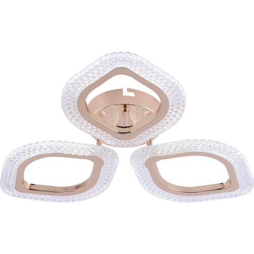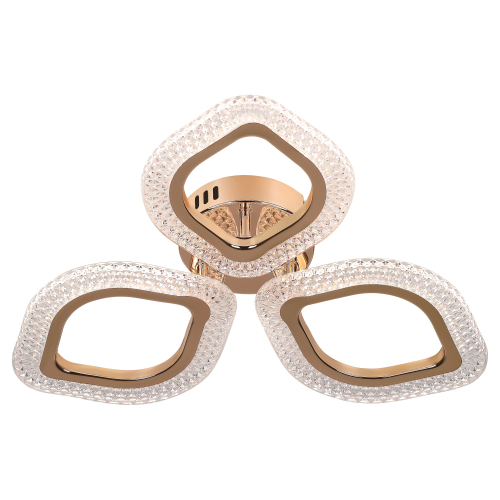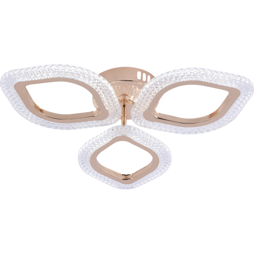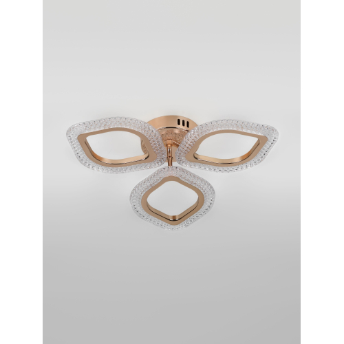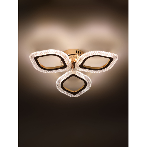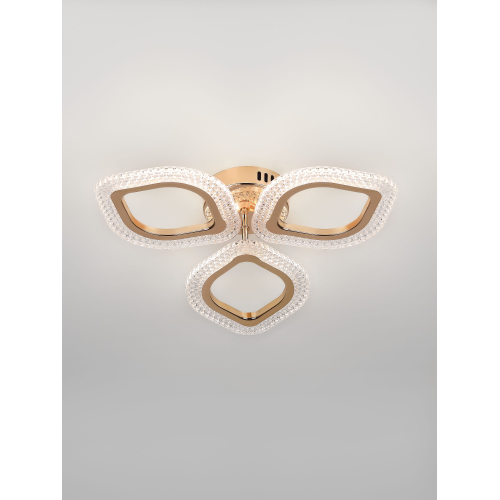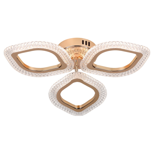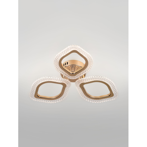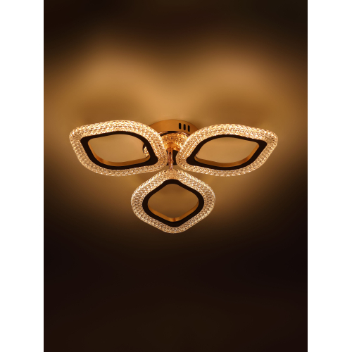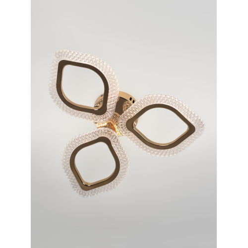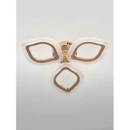 Стильный потолочный светодиодный светильник золотого цвета с рассеивателями в форме лепестка и эффектным рельефным акрилом. Оснащен пультом дистанционного управления для удобной регулировки яркости и режимов освещения. Мощность 36 Вт. Идеальное сочетание элегантного дизайна и функциональности для современного интерьера.