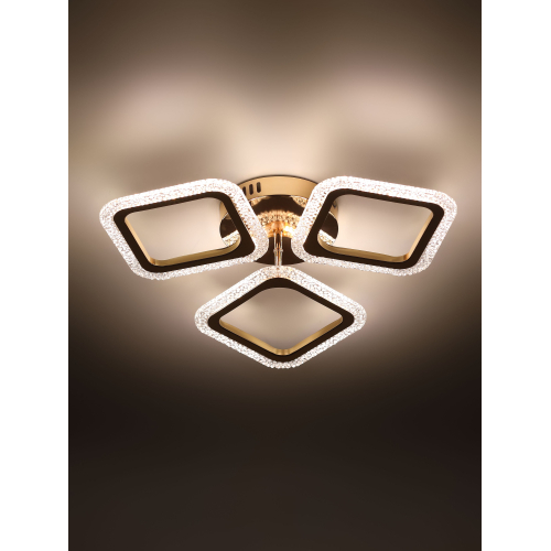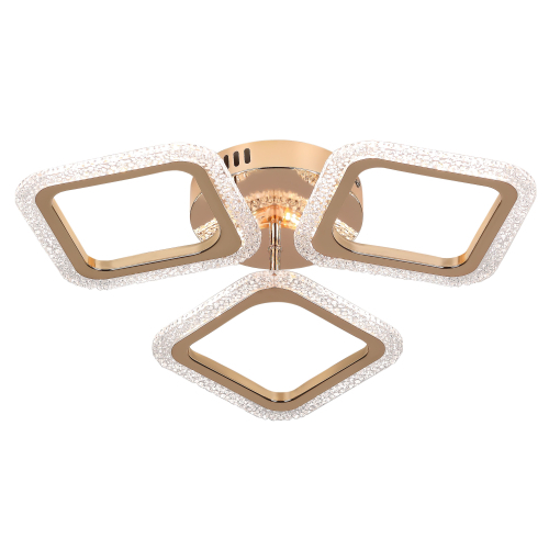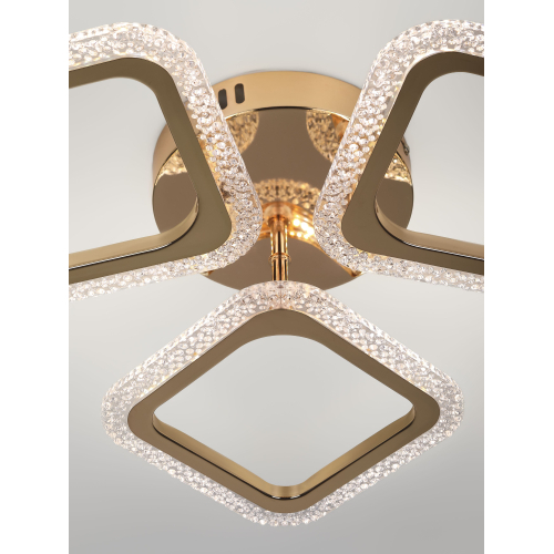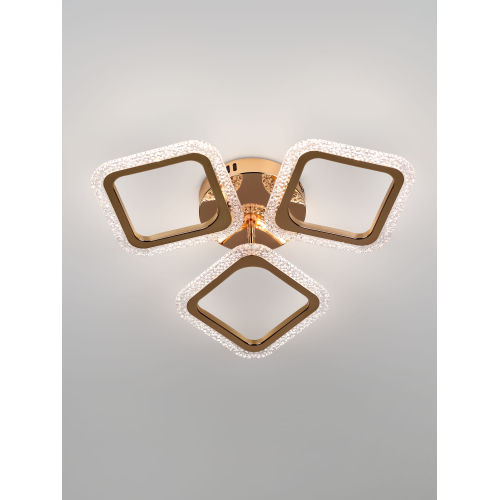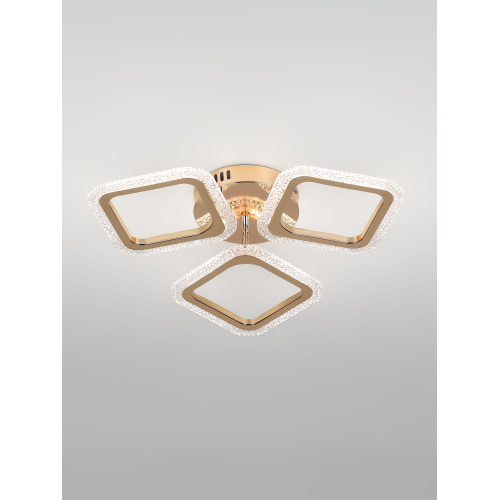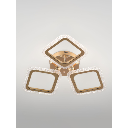 Стильный потолочный светодиодный светильник золотого цвета с квадратными рассеивателями и эффектным рельефным акрилом. Оснащен пультом дистанционного управления для удобной регулировки яркости и режимов освещения. Мощность 48 Вт. Идеальное сочетание элегантного дизайна и функциональности для современного интерьера.