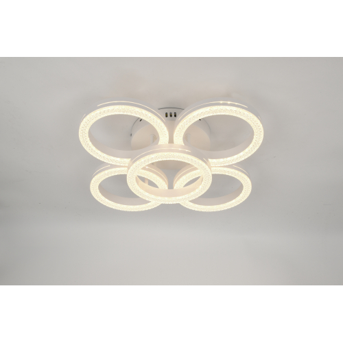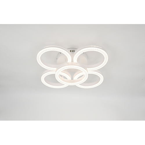 Серия потолочных светодиодных светильников-колец в белом цвете с рельефным акрилом. Мощность 75 Вт, регулируемая цветовая температура от 3000 до 6000К. В комплекте пульт дистанционного управления для удобной настройки освещения. Стильное и функциональное решение для современного интерьера.