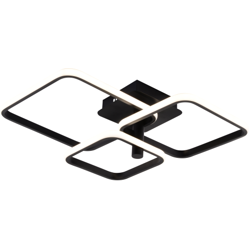 Светодиодные квадраты данной LED-люстры размещены на короткой штанге, такая модель подойдёт даже для низких потолков. Цветовая температура свечения регулируется пультом: освещение может быть как тёплым (3000 К), так и холодным (6000 К) или нейтральным белым, приближенным к естественному дневному. Яркость света также можно регулировать. Мощность светильника LED — 96 Вт. Применены качественные современные светодиоды. Корпус из лёгкого прочного металла. Коллекция выполнена в стиле модерн.