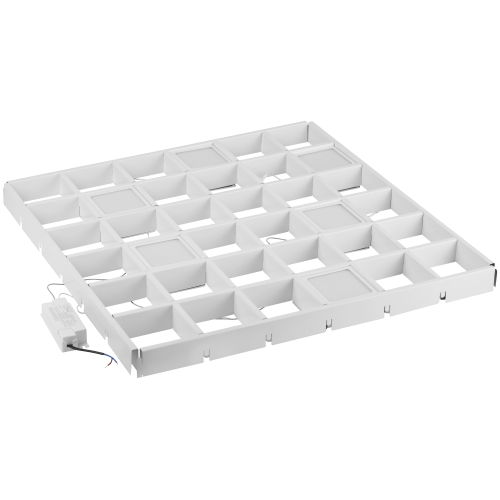 Светильники типа домино. Предназначены для монтирования в потолки Грильято с ячейками 100х100 и 50х50 Расстояние между кубиками - 38 см