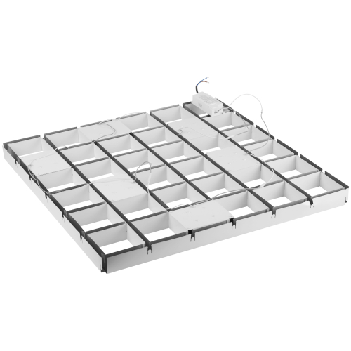 Светильники типа домино. Предназначены для монтирования в потолки Грильято с ячейками 100х100 и 50х50. Расстояние между кубиками - 38 см