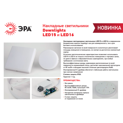 Точечные накладные светильники LED 16-24-4K – прекрасное решение для самых разных помещений в Вашем доме или квартире. С помощью накладных светильников можно подсвечивать от рабочего места до пространства для готовки на кухне. LED 16-24-4K выполнен из металла, отличающегося своими прочностью и долговечностью. Внешний размер светильника - 170*170*44 миллиметров. Степень защиты светильника - IP20, она дает возможность устанавливать его в разных помещениях, кроме тех, где повышена влажность. Тип рассеивателя - матовый, он способствует приятному и мягкому распространению света в комнате. Светильник обладает цветовой температурой в 4000К, что эквивалентно нейтральному дневному свету. Световой поток точечного светильника составляет 2 100 Лм. Для данной модели не нужна лампа, LED 16-24-4K работает при помощи встроенных светодиодов, срок службы которых составляет 30 000 часов. Мощность составляет 24 Вт. Светильник белого цвета, благодаря чему его можно размещать в самых разных по стилю интерьерах: минимализм, фьюжн, модерн, прованс или скандинавский. После установки Ваша комната преобразится и наполнится приятной атмосферой.
