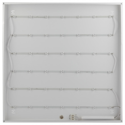 Светодиодный светильник. Светит, как ультратонкая панель приятным равномерным светом, и не уступает по яркости, при этом имеет значительно более низкую цену. Драйвер встроен в корпус светильник полностью готов к установке и легко монтируется на потолок любого типа как в качестве встраиваемого светильника, так и накладным или подвесным способом. Легко устанавливается в потолки Армстронг, на гипсокартонные, бетонные потолки.