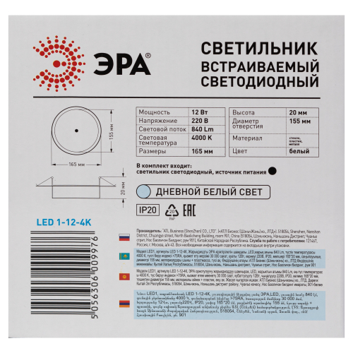 Точечный светильник LED 1-12-4K/LM предназначен для встраивания в потолок или стены. Он идеально подойдет для самых разных целей – с помощью таких светильников можно подчеркнуть отдельные зоны в комнатах и успешно расставить акценты. С помощью встраиваемых светильников можно подсвечивать картины, постеры или интерьерные молдинги. LED 1-12-4K/LM выполнен из алюминия и стекла, отличающихся своими прочностью и долговечностью. Внешний размер светильника - 168 миллиметров, а монтажный - 155 миллиметров. Тип рассеивателя - матовый, он способствует приятному и мягкому распространению света в комнате. Для данной модели не нужна лампа, LED 1-12-4K/LM работает при помощи встроенных светодиодов, срок службы которых составляет 30 000 часов. Мощность составляет 12 Вт. Световой поток точечного светильника составляет 540 Лм. Светильник обладает цветовой температурой в 4000К, что эквивалентно нейтральному дневному свету. Светильник белого цвета, благодаря чему его можно размещать в самых разных по стилю интерьерах: минимализм, фьюжн, модерн, контемпорари или скандинавский. Купив светильник Эра, вы сможете создать в своем доме атмосферу уюта и комфорта