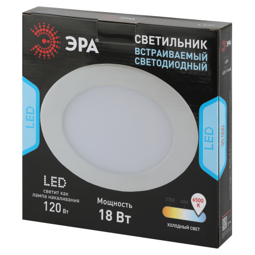Круглый светодиодный светильник LED 1-18-6K/1 - замечательное решение для любой комнаты в вашем доме! Светодиодный светильник можно использовать как в качестве базового освещения, так и для создания акцентов в определенных зонах комнаты. Благодаря скрытой части корпуса светильники можно встраивать в потолок или стены, создавая разный стиль помещений. Светильник ЭРА с приятным дизайном подойдет для помещений с разным интерьером: от минимализма до хай-тека, прованса или скандинавского стиля. Цветовая температура составляет 6500К, она оптимальна для глаз и не заставляет их испытывать дискомфорт. Максимальная мощность лампы – 18 Вт. Корпус встраиваемого светильника изготовлен из ударопрочного алюминия, что делает его особенно удобным в использовании, а благодаря матовому стеклу, защищающему лампу, свет рассеивается и становится мягким. Диаметр отверстия, требуемого для установки светильника составляет 195 мм, а размер самого светильника – 222 мм. Купив точечный светильник бренда ЭРА, вы останетесь довольны и сможете создать приятную атмосферу в доме!