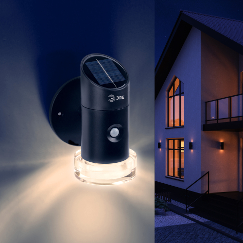 ЭРА ERAFS012-04 «Элегант» (арт. Б0057595) - уникальная новинка на рынке фасадных беспроводных светильников! RGB-светодиоды светят разными цветами, включая нейтральный белый для практичного базового освещения. Отличное решение для эффектного оформления фасада здания. При наступлении темноты автоматически включается мультиколор-подсветка, меняющая цвета. При появлении движения вблизи светильника включается яркое белое освещение. При отсутствии активности в течение 30 секунд датчик движения снова переключает фасадную подсветку на режим RGB. Встроенная солнечная батарея делает данный светильник экологичным и экономичным.