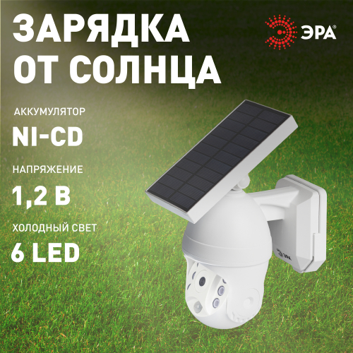 Светильник-муляж камеры видеонаблюдения предостережет от проникновения нежелательных гостей и обеспечит качественной вечерне-ночной подсветкой. 6 светодиодов создают яркое дополнительное освещение. Встроенный датчик движения активирует LED-подсветку только при наличии движения вблизи «камеры». Солнечная батарея расположена в верхней части уличного светильника и отлично накапливает энергию в течение светового дня. Одной полной подзарядки хватает на 8 часов непрерывного свечения. Хорошая влагозащита – IP44. Абсолютно новый продукт на рынке фасадных светильников с солнечными панелями.