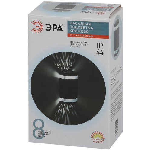 Уличный настенный светильник со световым кружевным эффектом. В светильник фасадный ЭРА ERAFS012-11 (арт. Б0057598) встроены 2 ярких светодиода белого цвета. Специальная перфорация корпуса формирует неповторимый световой рисунок. Беспроводные фасадные светильники ЭРА «Кружево» практичны и экономичны. В эти светильники для улицы встроены солнечные панели, которые накапливают световую энергию днём. Ночью красивая подсветка фасадная включается автоматически. Одного полного заряда хватает на свечение в течение 8 часов. Утром светильник снова начнёт заряжаться. Прочные материалы корпуса, влаго- и пылезащита позволяют применять такие светильники на солнечной батарее в любую погоду и в течение всего года.