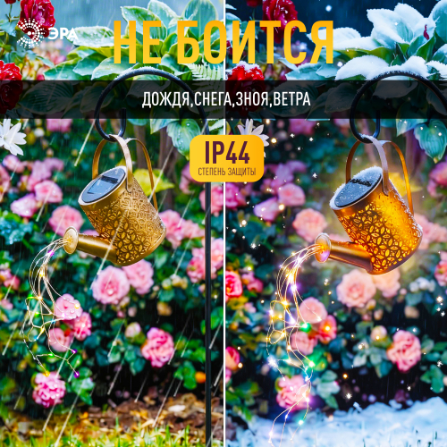 Декоративный светильник Солнечная лейка станет прекрасным украшением вашего участка или комнаты, создаст уютную атмосферу ночью и подарит теплый волшебный свет. А еще это отличный подарок друзьям и близким! Вам понравится! Фигурная стойка для установки в грун в комплекте.