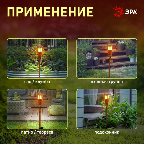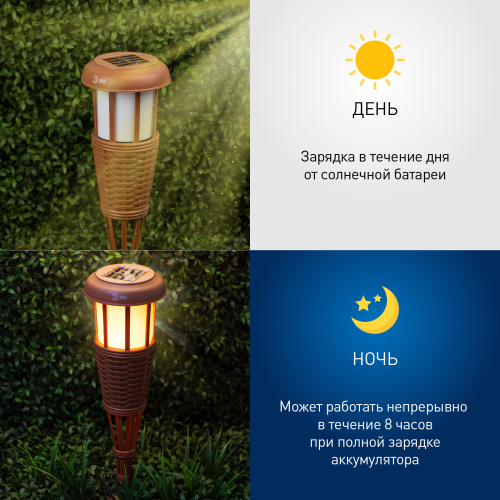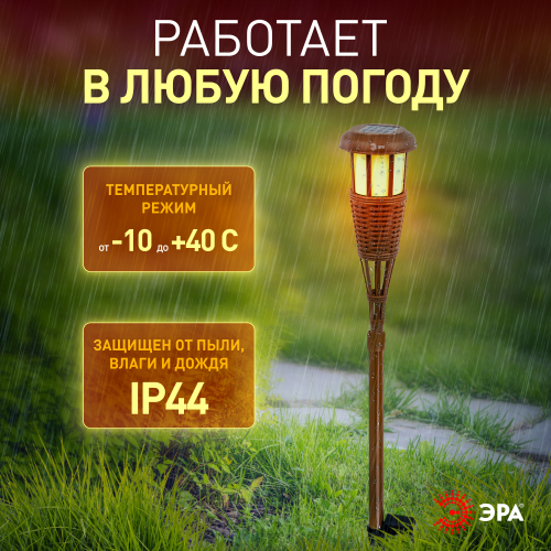 Светильник в виде Факела высотой 90 см., выполнена из бамбука. Мягкое свечение с эффектом горящего пламени послужит прекрасным украшением при оформлении садовых дорожек и клумб.Компактная эргономичная упаковка, несмотря на внушительные размеры в собранном виде.