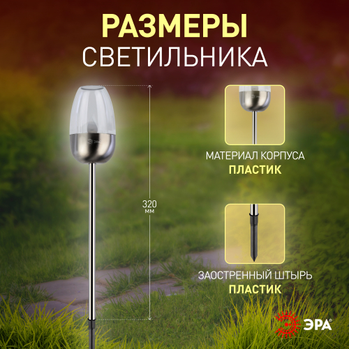 Фигурка садовая декоративная ЭРА ERASF22-37 "Идеал" станет элегантным украшением вашего загородного дома! Этот уличный светодиодный светильник легко втыкается в землю - его можно разместить в саду, украсить им пруд, альпийскую горку, подсветить тропинку или периметр участка. Садовый фонарь высотой 32 см выполнен из металла серебристого цвета и прозрачного пластика. Беспроводной светильник работает на солнечной батарее, этот тип получения энергии является самым экологичным, энергоемким, а также бесшумным. Питание происходит во включенном режиме в солнечную погоду, фигурка автоматически включается с наступлением ночи и работает до 8 часов. Имитация горения свечи и мягкий свет сделают ваш вечер теплым и изысканным!