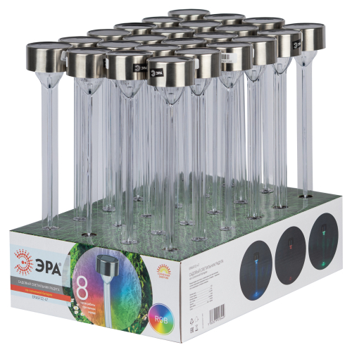 В светильнике уличном на солнечной батарее ЭРА ERASF22-47 "Радуга" (арт. Б0057653) установлен RGB-светодиод, подсвечивающий разными оттенками прозрачную ножку. Это грунтовый садовый светильник, который быстро и легко устанавливается в землю, гравий, газон. Встроенная солнечная батарея аккумулирует энергию естественного света в дневное время, превращая её в эффектную мультиколор-подсветку ночью. Светодиод автоматически начинает светить и менять цвета с наступлением вечера. Садовые светильники ЭРА "Радуга" особо удачны для оформления дорожек и входных групп, будут красиво смотреться у беседок, веранд, бань и любых загородных построек. Хорошее решение для сегмента horeca - помогут оформить территорию летних кафе, домов отдыха, гостиниц, отелей. Радужное свечение создаёт праздничное настроение и волшебную атмосферу за городом.