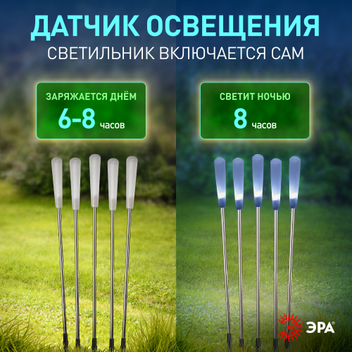 Светильник уличный ЭРА ERASF23-13 Камыши на солнечной батарее садовый высота 60 см 5 шт. 5 LED