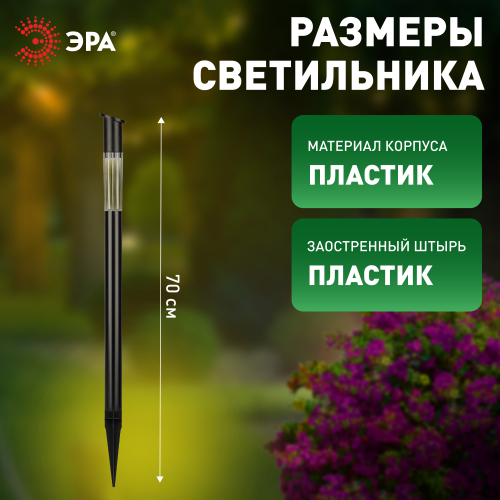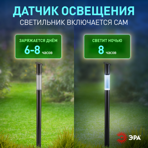 ERASF23-17 ЭРА Садовый светильник Старт, на солнечной батарее, холодный белый, высота 70 см, 1 LED