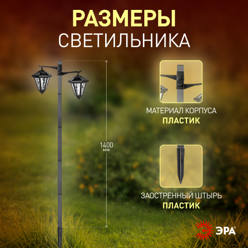 Светильник уличный на солнечной батарее высота 1,4 м 2 LED ЭРА ERASF23-28