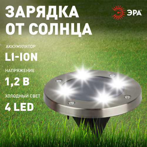 Уличный садовый светильник ERAST040-08 предназначен для подсветки сада, декоративного прудика, аллеи или придомовой территории. Нетипично данная подсветка смотрится в ступеньках или парковых дорожках. Модель имеет высоту 13 см и с легкостью устанавливается в землю с помощью заостренной ножки. Комплект состоит из одного светильника. Беспроводной LED светильник работает на солнечной батарее. Такой вид получения энергии является самым экологичным, энергоемким, а также бесшумным. Питание происходит во включенном режиме, днем. После захода солнца LED диоды зажигаются и заливают окружающее пространство холодным белым светом. Классическая отделка корпуса позволит лампе гармонично вписаться в любой стиль. Питание от солнечной батареи рассчитано на 8 часов непрерывной работы. Высокая степень защиты от влаги позволяет оставлять светильник на месте даже во время дождя. Перед использованием внимательно изучите инструкцию. Обращаем Ваше внимание, что перед использованием фигурки её необходимо включить и зарядить. Светильник заряжается в течение всего светового дня. Садово-парковая подсветка ERAST040-08 от бренда ЭРА универсальный вариант для преображения Вашего участка.
