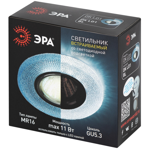 Точечный светильник со светодиодной подсветкой станет превосходным решением для любого помещения: его можно разместить в спальне, в детской или на кухне. Светильник с подсветкой можно использовать как в качестве базового освещения, так и для создания акцентов в определенных зонах комнаты. Благодаря скрытой части корпуса светильники можно встраивать в потолок или стены, создавая разный дизайн помещений. Точечный светильник ЭРА с приятным дизайном подойдет для помещений с разным интерьером: от лофта до модерна, классицизма или минимализма. Цветовая температура составляет 4000К. Такая температура оптимальна для зрения и не заставляет вас испытывать дискомфорт. Корпус встраиваемого светильника изготовлен из ударопрочного и стойкого к коррозии металла - алюминия, что делает его особенно удобным в использовании. Диаметр отверстия, требуемого для установки светильника составляет 65 мм, а диаметр самого светильника – 100 мм. Цоколь под лампу GU5.3 в комплекте. Купив точечный светильник бренда ЭРА, вы останетесь довольны и сможете создать уют в доме! Внимание: лампа не входит в комплектацию. Светильник потолочный встраиваемый точечный для кухни спальни детской GU5.3 / Светодиодная подсветка.