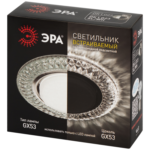 Светильник потолочный встраиваемый точечный для кухни гостиной спальни GX53 / Светодиодная подсветка. Встраиваемый светильник DK LD23 SL/WH со светодиодной подсветкой станет превосходным решением для любого помещения: его можно разместить в спальне, в детской или на кухне. Светильник с подсветкой можно использовать как в качестве главного освещения, так и для создания акцентов в определенных зонах помещения. Благодаря скрытой части корпуса светильники можно встраивать в потолок или стены, создавая разный дизайн помещений. Встраиваемый светильник ЭРА с ярким дизайном подойдет для помещений с разным интерьером: от лофта до модерна, классицизма или минимализма. Прозрачный корпус светодиодной подсветки выполнен из полимера, а цветовая температура составляет 4000К. Такая температура оптимальна для глаз и не заставляет их испытывать дискомфорт. Максимальная мощность лампы – 15 Вт. Корпус встраиваемого светильника изготовлен из ударопрочного и стойкого к коррозии материала - алюминия, что делает его особенно удобным в эксплуатации. Диаметр отверстия, требуемого для установки светильника составляет 90 мм, а диаметр самого светильника – 123 мм. Цоколь под лампу GX53 в комплекте. Купив встраиваемый светильник бренда ЭРА, вы останетесь довольны и сможете создать приятную атмосферу в доме! Внимание: лампа не входит в комплектацию.