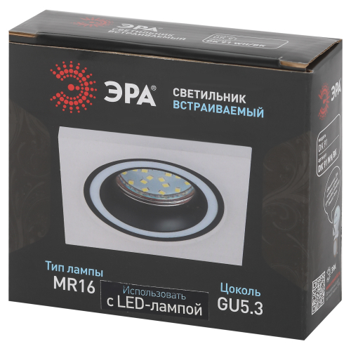 Светильник встраиваемый DK91 WH/BK MR16/GU5.3 - замечательное решение для любой комнаты в вашем доме! Точечные светильники можно использовать как в качестве основного освещения, так и для создания акцентов в определенных зонах комнаты. Благодаря скрытой части корпуса светильники можно встраивать не только в потолок, но и в стены, создавая разный стиль помещений. Светильник ЭРА с приятным дизайном подойдет для комнат с разным интерьером: от минимализма до хай-тека, прованса или скандинавского стиля.Максимальная мощность лампы составляет 50 Вт. Корпус встраиваемого светильника изготовлен из алюминия, что делает его особенно удобным и надежным в использовании. Диаметр отверстия, требуемого для установки светильника составляет 75 миллиметров, а размер корпуса светильника – 93x93x35 миллиметров. Цоколь под лампу GU5.3 входит в комплект. Купив точечный светильник бренда ЭРА, вы останетесь довольны и сможете создать приятную атмосферу и уют в Вашем доме! Внимание: лампа не входит в комплектацию.