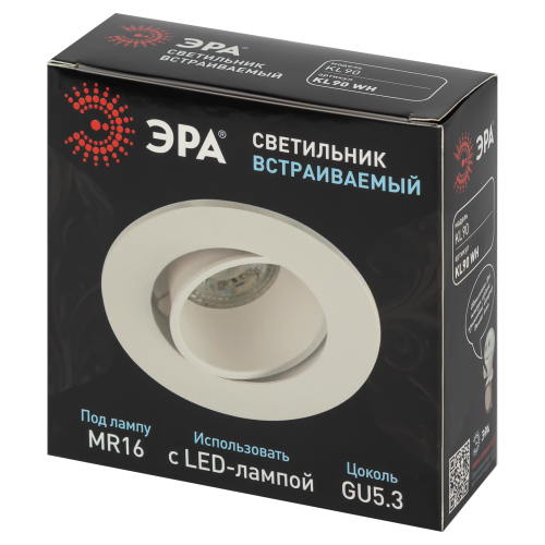 Светильник встраиваемый KL90 WH MR16/GU5.3 - отличный выбор для любого помещения в вашей квартире! Точечные светильники подходят как для основного освещения, так и для создания акцентов в определенных зонах комнаты. Благодаря скрытой части корпуса светильники можно встраивать не только в потолок, но и в стены, создавая разный стиль помещений. Светильник ЭРА с приятным дизайном подойдет для комнат с разным интерьером: от минимализма до хай-тека, прованса или скандинавского стиля. При помощи точечных светильников можно освещать только те участки помещения, которыми вы пользуетесь в данный момент, не затрачивая лишнюю электроэнергию. Максимальная мощность лампы составляет 11 Вт. Корпус встраиваемого светильника изготовлен из термостойкого пластика, что делает его особенно удобным и надежным в использовании. Диаметр отверстия, требуемого для установки светильника составляет 75 миллиметров, а размер корпуса светильника – 90x29 миллиметров. Цоколь под лампу GU5.3 входит в комплект. Купив точечный светильник бренда ЭРА, вы останетесь довольны и сможете создать приятную атмосферу и уют в Вашем доме! Внимание: лампа не входит в комплектацию.