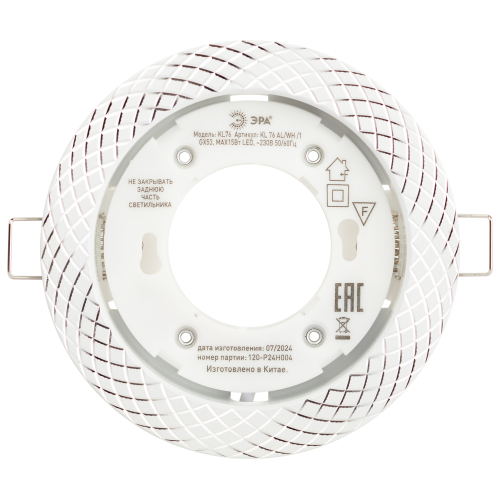 Светильник под лампу KL 76 AL/WH /1 Gx53 станет эффектным решением для любого помещения: его можно разместить в спальне, в детской или на кухне. Светильник можно использовать как в качестве основного освещения, так и для создания акцентов в определенных зонах комнаты. Благодаря скрытой части корпуса светильники можно встраивать в потолок или стены, создавая разный дизайн помещений. Встраиваемый светильник ЭРА с приятным дизайном подойдет для помещений с разным интерьером: от лофта до модерна, классицизма или минимализма. При помощи точечных светильников можно освещать только те участки помещения, которыми вы пользуетесь в данный момент, не затрачивая лишнюю элеткроэнергию. Максимальная мощность лампы – 15 Вт. Корпус встраиваемого светильника изготовлен из металла, что делает его особенно удобным в использовании. Диаметр отверстия, требуемого для установки светильника составляет 90 мм, а диаметр самого светильника – 110 мм. Купив встраиваемый светильник бренда ЭРА, вы останетесь довольны и сможете создать уют в доме! Внимание: лампа не входит в комплектацию.