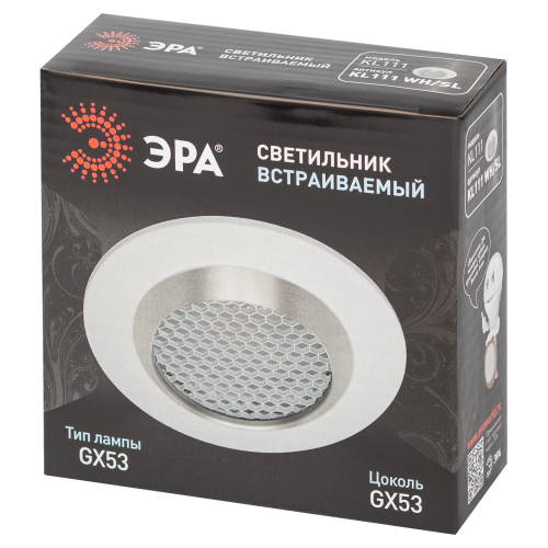 Потолочный точечный светильник ЭРА KL111 WH/SL под светодиодную лампу GX53 мощностью 15 Вт – это идеальное решение для создания комфортного и эффективного освещения в вашем доме или офисе. Этот светильник прекрасно подойдет для установки в подвесные, гипсокартонные или натяжные потолки, позволяя организовать качественное и равномерное освещение в помещении. Диаметр софита - 10,5 см, диаметр врезного отверстия - 9 см. Обратите внимание, что лампочка в комплект не входит