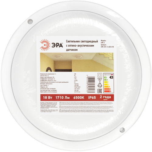 Пылевлагозащищённый LED-светильник IP65 круглой формы. Оснащён оптико-акустическим датчиком движения. В случае отсутствия какого-либо движения, свет гаснет. Если время задержки, 20-25 секунд, еще не истекло и зафиксировано движение, тогда начинается новый отсчет.