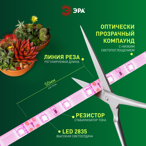 Окунитесь в мир яркой зелени и пышного цветения прямо у себя дома с инновационной светодиодной лентой ЭРА FITO-Strip! Забудьте о блеклых красках и медленном росте – подарите своим растениям источник жизненной энергии, который преобразит их до неузнаваемости.