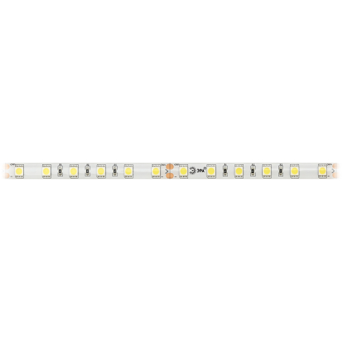 ЭРА Лента светодиодная LS5050-14,4-60-24-65-4000К-5m (50/800) со степенью защиты от пыли и влаги IP65 - современный способ создания внутреннего освещения, подсветки ниш, лестничного пространства, систем хранения, а также декоративного и художественного оформления любых объектов и форм в помещениях с повышенным уровнем влажности и уличного освещения. Легко и быстро устанавливается на любой гладкой поверхности с помощью скотча, расположенного на оборотной стороне ленты Используя алюминиевый профиль, можно создавать необычные и функциональные решения освещения в Вашем интерьере. Рабочее напряжение ленты составляет 24В, а мощность равна 14,4 Вт/м. Светодиодная лента обладает световым потоком 1000 Лм/м, и цветом свечения - дневной белый (4000 К)