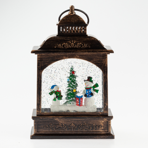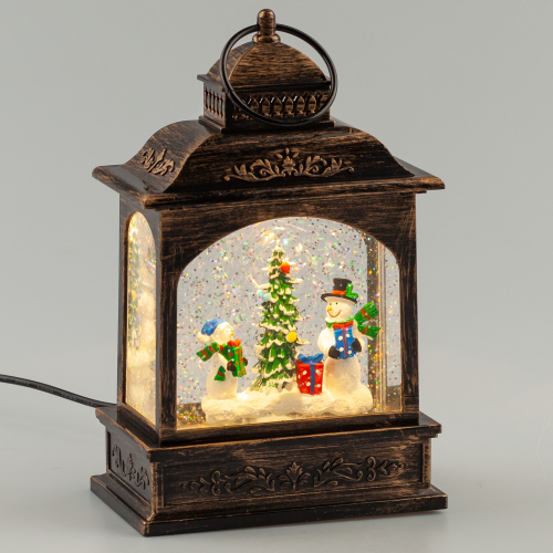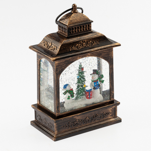 Новогодний светодиодный светильник ЭРА ENGDS-11 "Снеговики" высотой 21 см (арт. Б0051943) создаст у Вас дома атмосферу уюта и тепла! Светильник фонарь выполнен из ПВХ и окрашен под медь, внутри стекла расположены блестки, создающие эффект падающего снега. Внутри фонарика находятся фигурки двух снеговиков с елочкой, они подсвечиваются 1 светодиодной лампочкой сверху. Фонарь работает от 3 батареек АА, степень защиты IP20 (рекомендуется использовать в помещениях), автоматическое отключение через 6 часов. Этот декоративный светильник станет прекрасным украшением кухни, гостиной, а еще его можно использовать в спальне как ночник. Настольный фонарик под старину - это необычный подарок на Новый год или Рождество, который оценят и взрослые, и дети. Новогодний декор для дома всегда создает праздничное настроение!