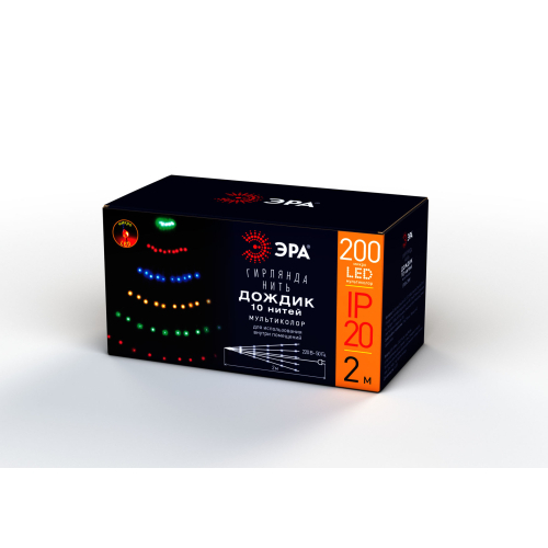 Многоцветная новогодняя гирлянда ЭРА "Дождик" ENIN -2NM (арт. Б0047966) идеально подходит для украшения елки. 10 нитей со светодиодами одним своим концом соединены между собой. Место соединения удобно размещать на макушке дерева, а 2-метровые нити - по сторонам и веткам. С помощью этой практичной гирлянды можно создать импровизированное новогоднее дерево прямо на стене. В тонкие полупрозрачные провода-нити с гибкой конструкцией встроены микросветодиоды. Это актуальный современный дизайн новогодней иллюминации. LED-технология экономит электроэнергию и создает яркое ровное свечение. Отличное решение для новогодних праздников!