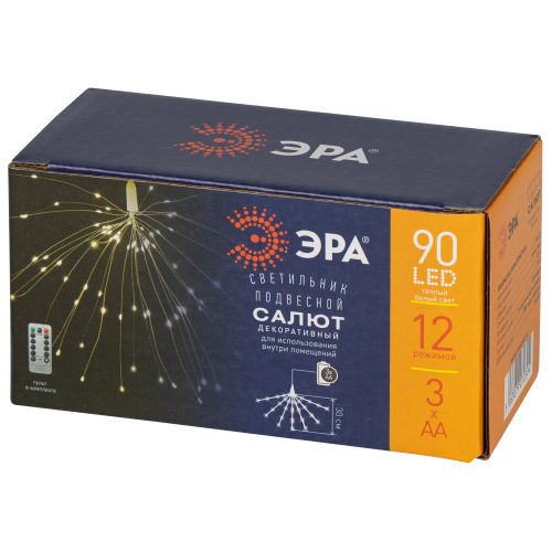 Светодиодная новогодняя гирлянда подвесной светильник Салют теплый белый 90 led 2*AA ЭРА ENIS-90W