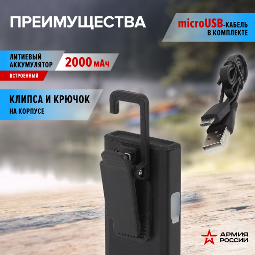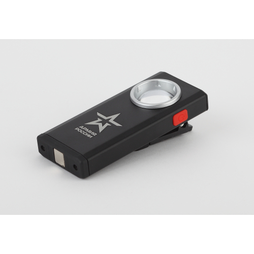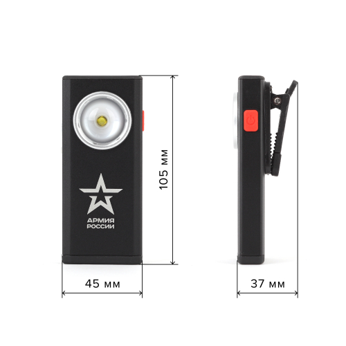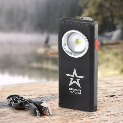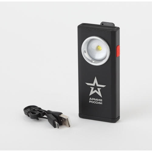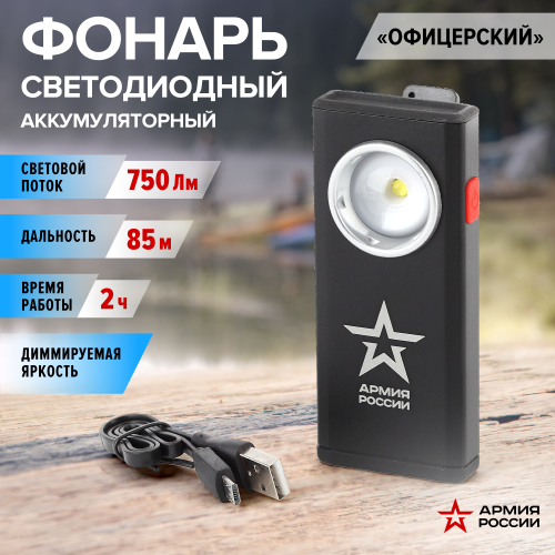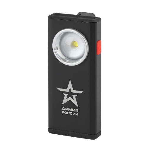 ЭРА RA-802 "ОФИЦЕРСКИЙ" - усовершенствованная модель традиционного офицерского фонаря. Входит в серию Армия России совместный проект ЭРА и компании "Военторг", действующей на основании лицензии Министерства обороны РФ. Фонарь с емким литиевым аккумулятором 2000 мАч. При своих компактных размерах дает очень яркий свет мощностью 10 Вт. Корпус изготовлен из алюминия, имеются защитные резиновые вставки. Фирменная звезда и логотип Армия России. Светоотражатель с линзой для широкого угла освещения. Кнопка включения яркого красного цвета расположена в боковой части корпуса, покрыта мягким прорезиненным материалом. Типы крепления: прищепка для нагрудного кармана, ремня сумки (с внутренними резиновыми вставками, которые надежно фиксируют устройство даже на гладкой скользкой поверхности); встроенный крючок для подвешивания; магнит для закрепления на металлических поверхностях. Фонарь заряжается от USB, кабель в комплекте. Одного полного заряда хватает на 2 часа непрерывного свечения. Есть возможность выбора яркости света (плавное диммирование). Дальность светового луча - 85 метров.