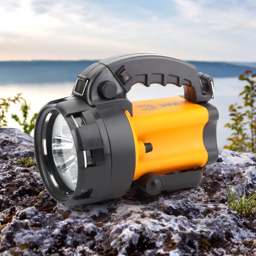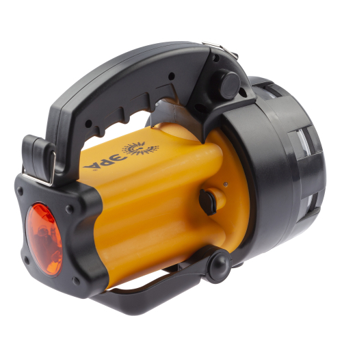 Светодиодный аккумуляторный прожектор с сигнальной лампой. Это очень мощный фонарь, практичный и удобный. Корпус выполнен из ударопрочного пластика. Эргономичная ручка делает фонарь очень удобным в переноске, ведь для мощного прожектора фонарь имеет достаточно небольшие габариты. Фонарь поддерживает два режима работу. На 50% мощности и на 100% мощности. Так что можно переключиться на необходимый световой поток в любой момент. Дальность луча прожектора составляет 130 метров. В прожекторе использовано три белых светодиода мощностью 1 ВТ. Этого вполне достаточно для освещения в любых условия. Светодиоды яркие, экономичные и светят белым светом. В задней части фонаря встроен сигнальный красный светильник.Прожектор может работать 5 часов без подзарядки, аккумулятор заряжается от сети 220 V или бортовой сети автомобиля. Для большего удобства фонарь оснащён ремнём для переноски на плече. Для прожектора у фонаря достаточно небольшие габариты и он не станет мешать, когда необходимо пройти достаточно большое расстояние пешком.Фонарь PA-604 - это практичный помощник для пеших прогулок, отдыха на природе, на охоте или рыбалке, а также дополнительный источник света в чрезвычайных ситуациях. Неоспоримыми преимуществами фонаря PA-604 является ударопрочный корпус, яркие и мощные светодиоды, отличная дальнобойность, широкий луч света и возможность заряжать фонарь, как от сети, так и в автомобиле.